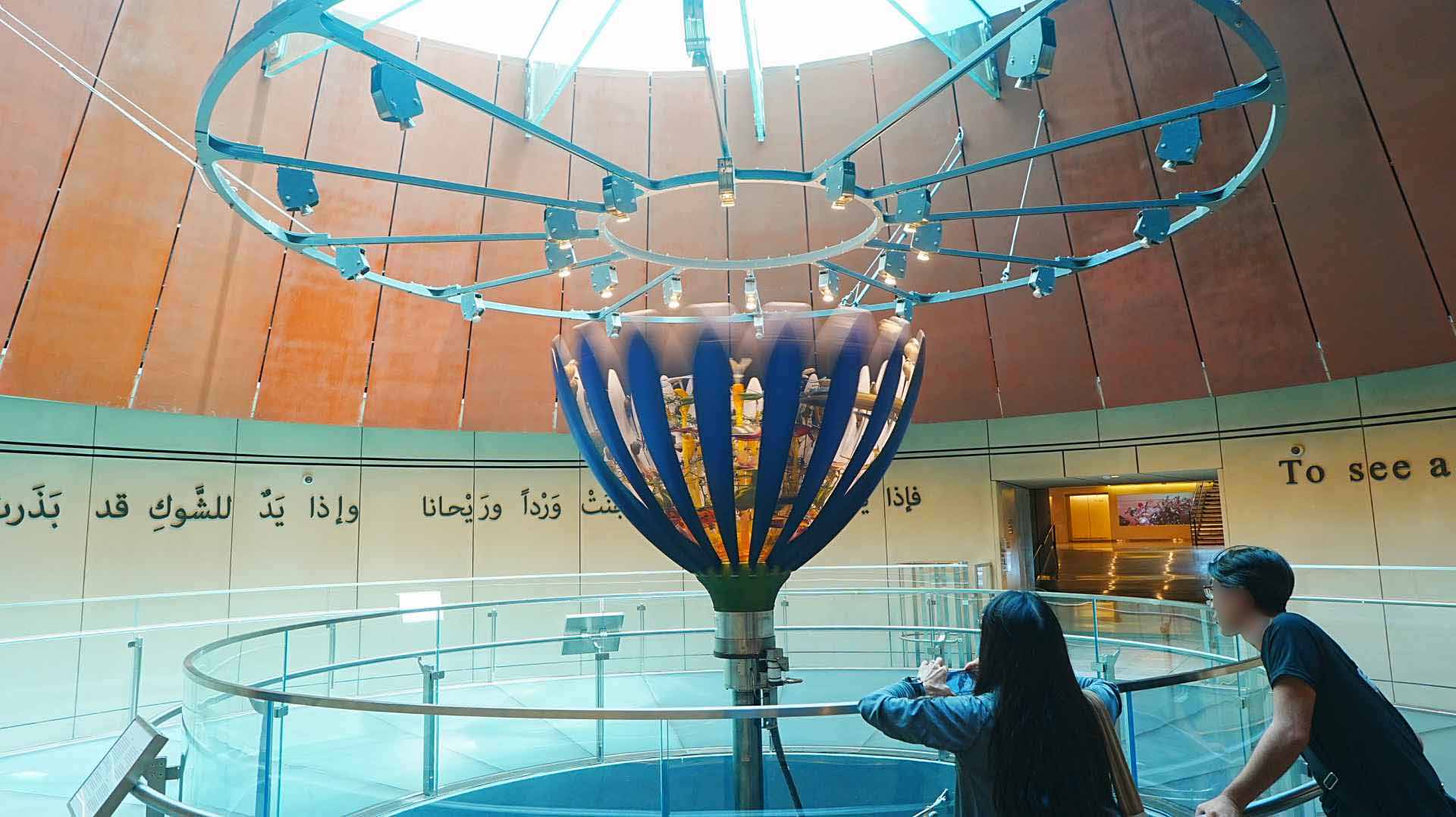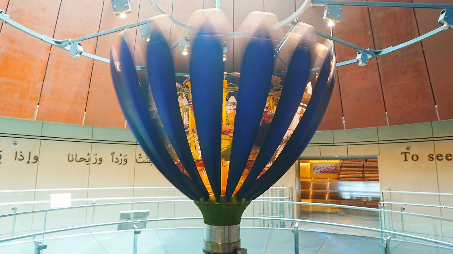 この花のつぼみみたいなもの。回転しながら花弁が開き、中の映像が見られます。