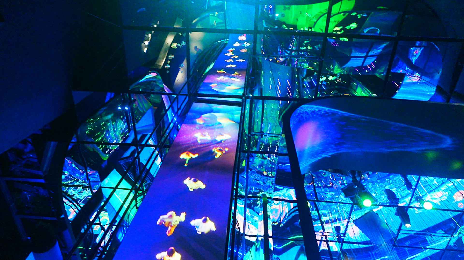 ここはブロックがプロジェクションマッピングに合わせて飛び出してきたりへこんだりして、立体的な映像を見ることができました。